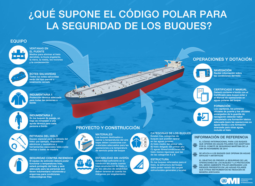 En mayo de 2015 se ha adoptado en el marco de la Organización Marítima Internacional el Código Polar, que regula el tráfico marino en esa región. Entrará en vigor en 2017 y establece medidas para prevenir catástrofes, como el diseño de buques, operaciones y dotación, así como la formación del personal a bordo en rescate, búsqueda y protección medioambiental.